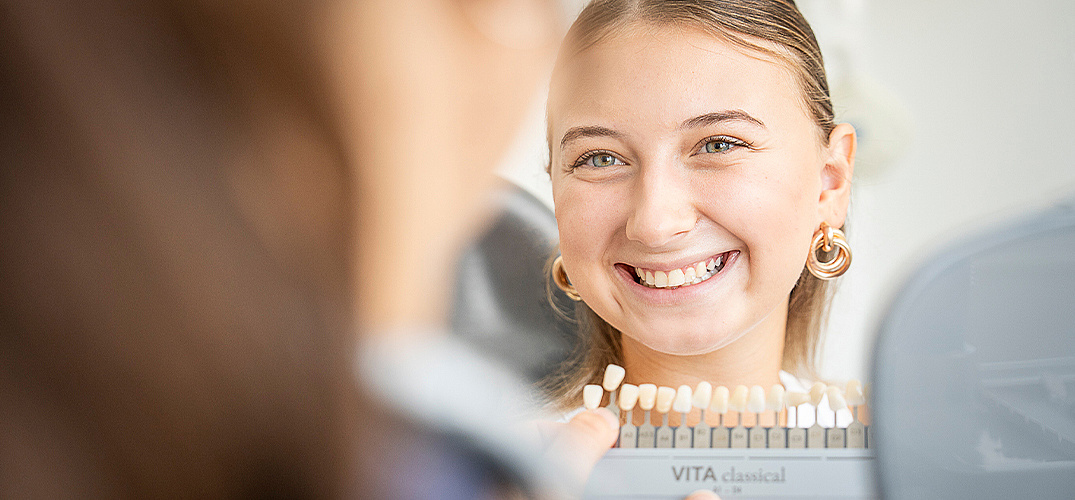Ein strahlendes Lächeln mit natürlich weißen Zähnen vermittelt Gesundheit, Sympathie und Selbstbewusstsein. Doch im Laufe der Zeit verliert selbst ein gesundes Gebiss an Helligkeit. Tee, Kaffee, Rotwein, Nikotin oder bestimmte Medikamente hinterlassen Spuren auf den Zähnen. Auch wurzelbehandelte Zähne können sich verfärben. In der Zahnarztpraxis Dr. Buff und Dr. Nemitz in Wiesbaden bieten wir Ihnen ein professionelles Bleaching an, das Ihre Zähne schonend, sicher und effektiv aufhellt – für ein Lächeln, das Sie mit Freude zeigen können.