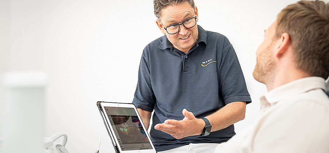 Zunächst erfassen wir Ihre Zahnsituation mithilfe moderner Diagnostik. Wir erklären Ihnen den Ablauf, mögliche Alternativen und beantworten alle Fragen.
